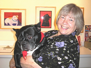 Art lovers and other animals thronged Spencertown Academy on Sunday afternoon for a benefit to support local companion dogs. The Academy walls were rich in canine portraiture by young, not-yet-established artists from Taconic Hills Central School, as well as by an astonishing array of art stars such as Richard Serra, Laurie Anderson, Kiki Smith, Karen Halverson, Lou Reed, Bruce Weber, Sylvia Plachy, Valerie Schaff, Elliot Erwitt, the list goes on and on, who had donated portraits of their own pets. "Many of the established artists were inspired to make new pieces," said Elizabeth Hess, Vice President of Art for Animals, "which speaks volumes about their commitment to the cause." For the past decade, Art for Animals has donated the proceeds from art sales to rescue groups. This event was the first time student work was included. The student work was sold through a silent auction that ended on Sunday. The established artists' work will be on sale at the Academy through November 8 and after that through Art for Animals.