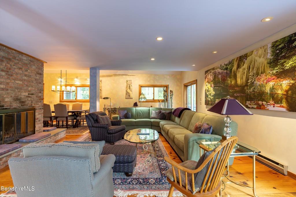 Sited on 3.6 acres in Alford, this cottage is surrounded by woodland gardens. The home has been appointed with curated art from local craftspeople and is being sold fully furnished. It has an open floor plan, three bedrooms and two bathrooms, double fireplaces, a custom kitchen, and laundry room. The property includes a pond and garden. Listed at $675,000 by ACRES.
