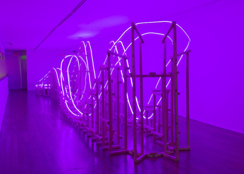 EJ Hill, A Monumental Offering of Potential Energy, 2016. Wood, LED Neon Flex, and durational performance. The Studio Museum in Harlem. Photo: Adam Reich