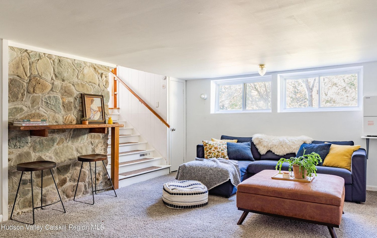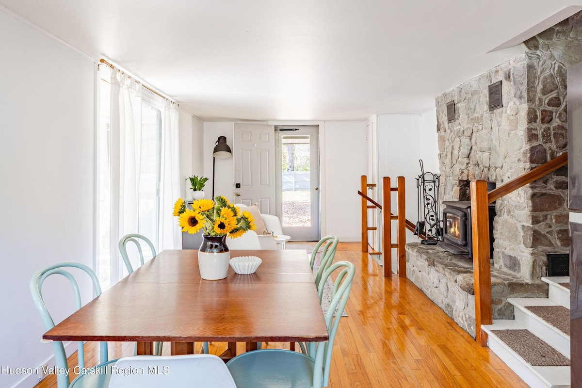 This three-bedroom, two-bathroom bungalow in Austerliz offers a split-level floor plan, with two living areas, a wood-burning stove and fireplace. The open-plan kitchen has stainless steel appliances, and the outdoor living space includes a spacious front deck and a backyard fire pit. Listed at $395,000 by Compass.