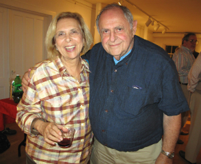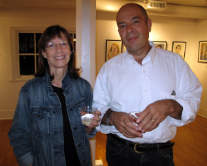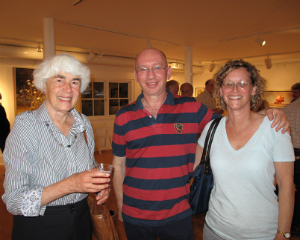 Art Sherman and Enid Michaelman; Artist and Meeting House Gallery committee head Elizabeth Lombardi with author Alon Gratch and Michele Sacks.