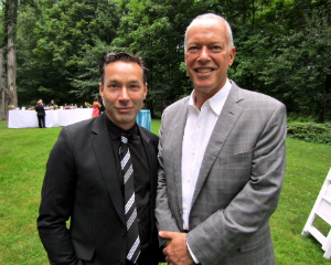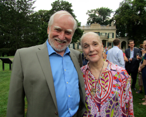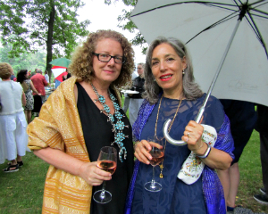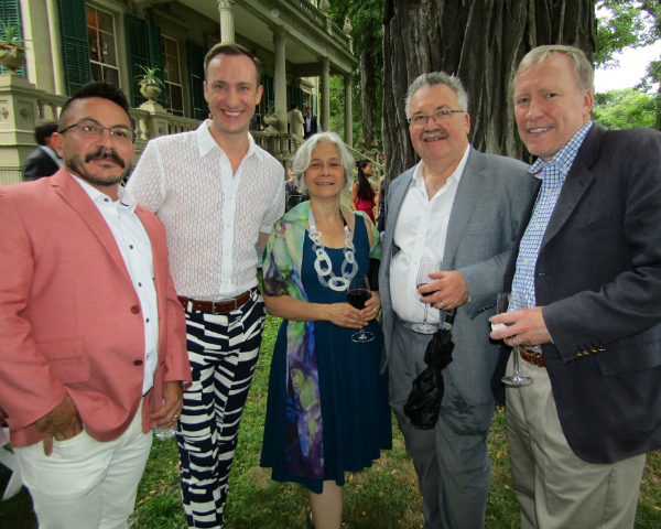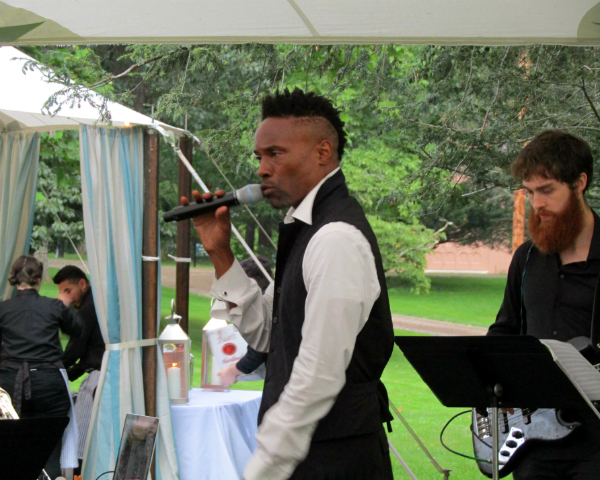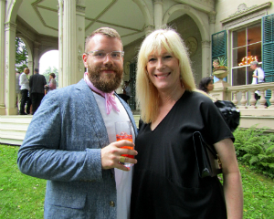 Amy Krzanik reports from Annandale-on-Hudson. Twinkling lights, lush foliage, green lawns that seemingly go on forever, magical Hudson River views, a mansion in the background: it’s easy to see why Bard College held its SummerScape Gala on the fairy tale-esque grounds of Montgomery Place for the second year in a row. On Saturday evening, July 22, the 19th century estate, which is now part of the Bard campus, played host to around 300 supporters of the Richard B. Fisher Center for the Performing Arts. Cocktails were created by James Beard Award-winning mixologist Leo Robitschek; dinner was prepared, using locally sourced ingredients, by Chef Ira Lee and Brenda Black of Twisted Soul in Poughkeepsie, N.Y. And what would a fundraiser for a performing arts center be without a performance? This year’s gala featured a one-night-only set by Tony and Grammy Award-winning actor and singer Billy Porter, a.k.a. “Lola” from Broadway’s Kinky Boots. This year’s gala concluded with an after-party at the Spiegeltent hosted by nightclub impresario Susanne Bartsch. Pop-up performers included Joey Arias, Amanda Lepore, and many other fabulous faces. [At left, gala co-chairs Carolyn Marks Blackwood and Gregory Quinn.]