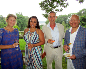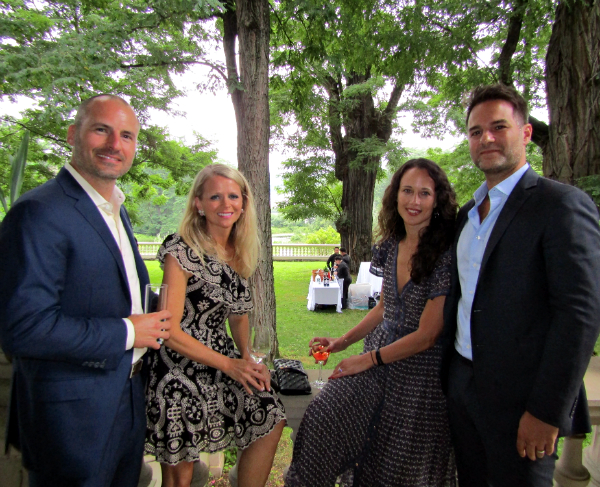 Chris and Carol Gorczynski and Effie and Joshua Strauss take in the Hudson River views from the back portico.