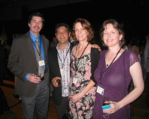 Gala Chair Debra Miersma and painter Michael Rousseau; novelist and translator Hester Velmans with Joel Millonzi and Kate Millonzi.