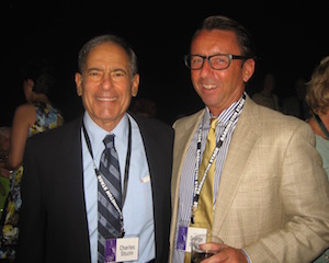 Rachel Louchen reports from Pittsfield. For the 21st year, Barrington Stage Company celebrated its season-opening gala with a show, party, and excitement for the summer ahead. On Saturday, June 25, the evening started fittingly with BSC founder/artistic director Julianne Boyd and board chair Mary Ann Quinson addressing the crowd of "longtime, faithful supporters" from the Boyd-Quinson Mainstage. They then introduced Tony Yazbeck, current star of Broadway's Finding Neverland for a hour-long performance, The Floor Above Me, which traced his career, life and loves through song and tap dancing. Yazbeck, who starred in BSC's 2012 production of On The Town, spoke of his time at the company, zeroing in the expert crew and strong community spirit. Post song and dance, guests crossed North Street en mass to the Boys & Girls Club of Berkshires for cocktails and a chance to bid on auction items before a sit-down dinner. [Above, associate artist Brian Prather and Erin Keller. ]