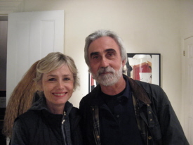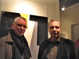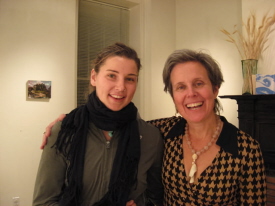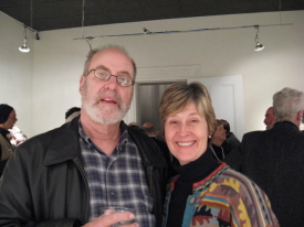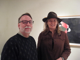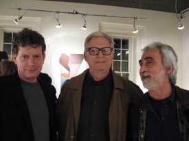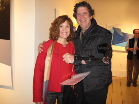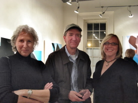 Saturday night, two new shows at BCB ART—"Black, White & Blue, new paintings by Bart Gulley" and "Around Here: 9 Local Landscapes by Sasha Chermayeff"— drew art world cognoscenti from both sides of the river and Massachusetts to the Hudson gallery. Despite harrowing weather, nearly 250 people turned out to see Gulley's new paintings, which combine dynamic hard-edged geometrics with more lyrical sections in his customary painterly style. In a departure from Chermayeff's usual abstract work, her landscapes attempt the impossible — to capture the elusive "perfect day." Both shows are up through November 30.