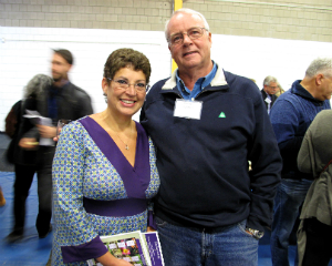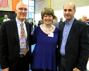 Amy Krzanik reports from Pittsfield. The wind may have been whipping the autumn leaves into a wet frenzy outside, but inside Berkshire Community College’s Paterson Field House, the mood was warm and welcoming on Friday night, October 24. Supporters mingled at a preview party kicking off the annual Berkshire Orchid and Tropical Show. Guests enjoyed hors d’oeuvres from Ye Olde Forge Restaurant, treats from Chocolate Springs Café, and libations provided by Kelly’s Package Store as relaxing waterfall sounds played over the PA system. A short live auction and a competitive silent auction raised funds for the BCC Foundation as bidders attempted to win gift certificates from Catamount and Jiminy Peak ski resorts, services from Kripalu and The Clip Shop, wine from Balderdash Cellars and other sought-after items. Proceeds from the evening benefit the Foundation, which, among other duties, provides more than 150 scholarships to students in need. Above, Craig Smith, vice president for institutional advancement, with BCC President Ellen Kennedy and auctioneer John Economou.
