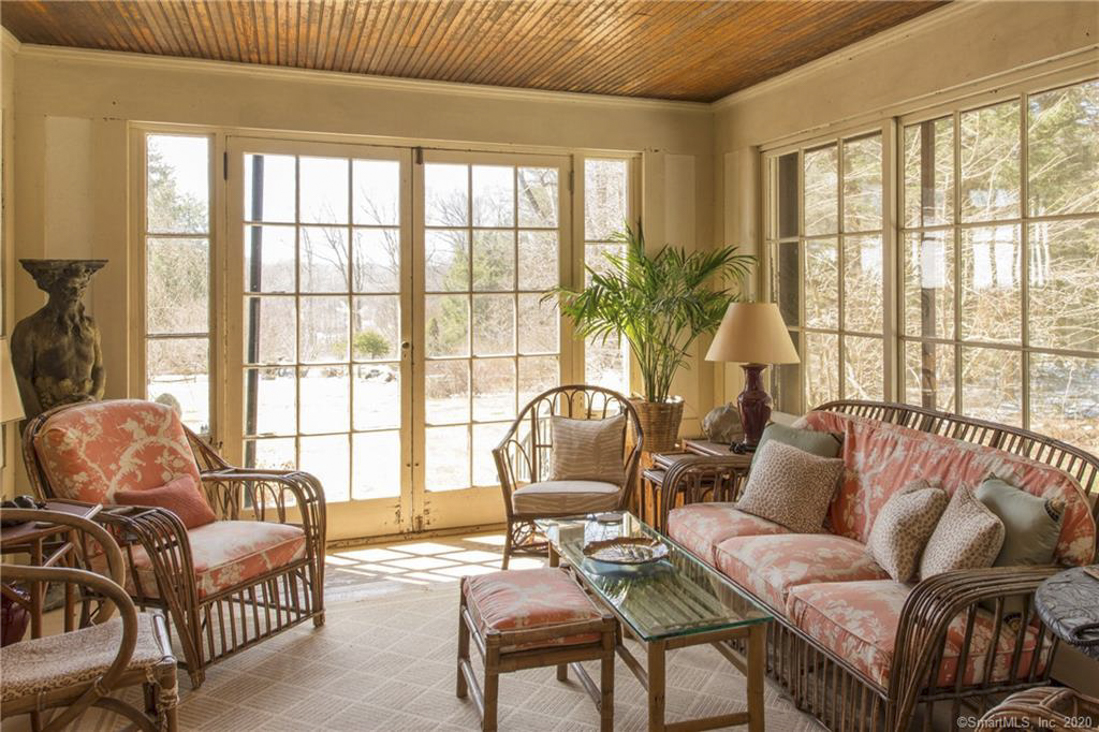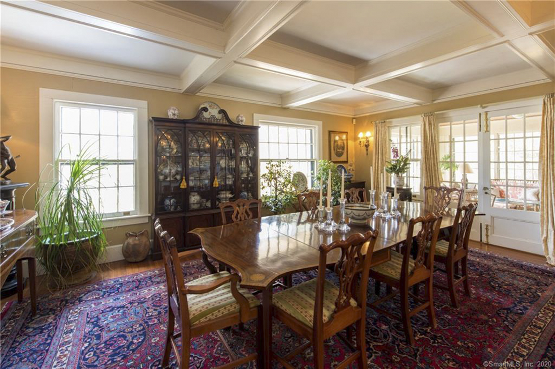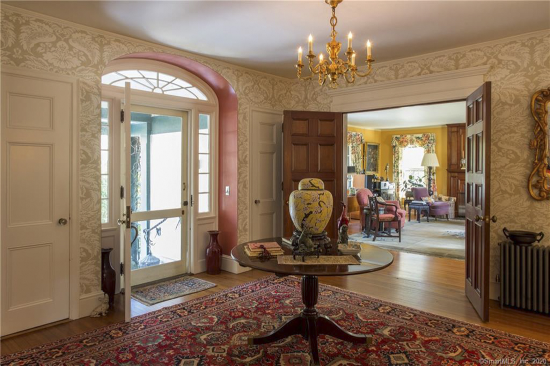 A "Cotswold Cottage" style house in Norfolk, circa 1895, was enhanced by Alfredo Taylor in 1926. It has 5,500 square feet on just under three acres. A large foyer opens into the living room and a library. There are multiple fireplaces, a dining room, a chef's kitchen with custom-made cherry cabinets, a butler's pantry, and a rear staircase. There are six bedrooms and four bathrooms, with a master suite offering a walk-in closet, fireplace, soaking tub, and large dressing room. There is also a sunporch, specimen plantings, an in-ground pool, and space for a tennis court. The property is three blocks away from the country village. Listed for $1,095,000 by Best & Cavallaro.