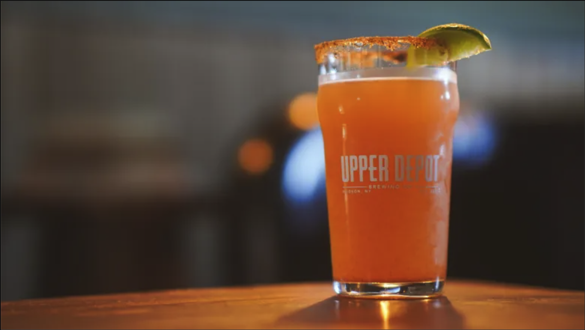 The “Depot-lada”: a play on the michelada: Upper Depot Pete’s Pilsner, lime juice, hot sauce, Heinz 57 sauce, Worcestershire sauce, chili salt.