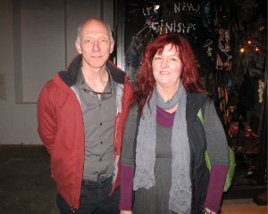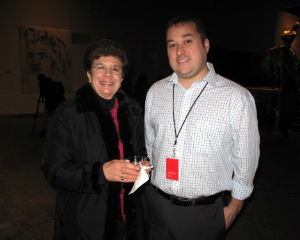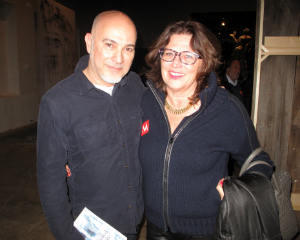 Amy Krzanik reports from North Adams.MASS MoCA's largest gallery is now home to Izhar Patkin: The Wandering Veil (on view through September 1), an overview of the Israeli-born, New York-based artist's 30-year career. On Saturday, January 18, guests packed the gallery for a talk by Patkin and an opening reception for the exhibition, whose centerpiece is a collection of mural-size paintings on tulle entitled "Veiled Threats," which was inspired by the poems of the late Agha Shahid Ali, and which is making its U.S. debut here at MASS MoCA. The show also includes collage, paintings in a variety of styles, and an eclectic array of sculpture created from aluminum, wax, porcelain and blown-glass. Shown above: Izhar Patkin and Artis founder Rivka Saker.