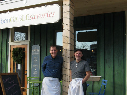 “People kept telling us we were moving to the wrong end of town," says Ben Gable, co-proprietor with Michael Gray of Chatham’s new eat-in, take-out specialty food boutique, Ben Gable Savories. Upon closer examination, it seems fair to say that whichever end of town Ben Gable Savories occupies ipso facto becomes the right place to be. A year ago, when they bought the then derelict building in anticipation of a move from the heart of hippest Brooklyn, the couple no doubt observed that the location on the recently reconfigured Central Square was amidst some of the village’s best old buildings (including the eccentric charmer occupied by the Blue Plate Restaurant). They also may have noted that the municipal plantings in the square out front (then the handiwork of landscaper Wendy Carroll who, alas, has since departed to ply her trade full time at Steepletop, the Edna St. Vincent Millay historic property in Austerlitz) were terrific--a cut-far-above-the-norm. But to hear Ben and Michael tell it, it was the building itself, a two-story board-and-batten late-19th-century vernacular, that stole their hearts. Now, after a top-to-bottom rehab, it is stealing ours too, though it's the wares served therein that are the real draw--tarts, salads, soups, baked goods, and (hallelujah!) world-class coffee--Stumptown’s Hair Bender, either brewed or put through the paces of a dazzling La Marzocco espresso machine.