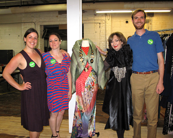 Amy Krzanik reports from Dalton. In the immortal words of David Bowie, “Fashion! Turn to the left. Fashion! Turn to the right. Oooh, fashion!" To the left we had BerkChique! event chair Vicki Bonnington’s hand-curated couture in a wide range of styles, sizes and price points. To the right, was another roomful of reasonably priced men’s and women’s clothing, shoes, jewelry, bags and belts to pour over. Those who attended the BerkChique! preview party on Friday, June 5 at The Stationery Factory got first dibs on all of the above, plus hors d’oeuvres courtesy of The Red Lion Inn (a founding sponsor), beer and wine from Kelly’s Package Store and goodie bags stuffed with freebies from Blue Q, Iredale Mineral Cosmetics, Mighty Brittle and Radiance Yoga. The Berkshires’ most popular used clothing sale continued through the weekend, with a portion of sales donated to Community Access to the Arts, IS183 Art School, Shakespeare & Company and WAM Theatre, and unsold items going to local non-profits, including Goodwill Industries and its Berkshire County Suit YourSelf program. Above, fashion guru Vicki Bonnington beautifully reigns over her fashion kingdom.