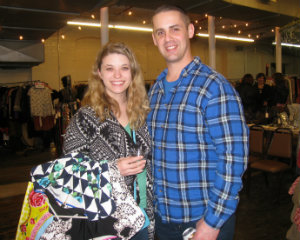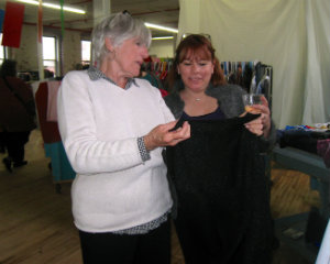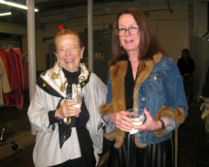 Lisa Green reports from Dalton. For some, the now-annual Berkchique! charity clothing sale is the biggest shopping opportunity of the year, and this year’s, held at the former Crane Stationery factory, was no different. With perhaps one exception: the rack of Jean Paul Gaultier (new, with tags) that Berkshires fashion icon and event chair Vicki Bonnington snapped up on eBay with the sale in mind. While the event runs the weekend, the Friday, May 6 evening First Dibs Party and Sale brought in a stream of shoppers at $25 a pop who, regardless of what they bought, snagged a deal and took their purchases away in a totebag donated by Pittsfield's own Blue Q with a surprise inside courtesy of Jane Iredale. The beneficiaries of the event include 1Berkshire, IS183 Art School, WAM Theatre and CATA (which had its own rack of dresses for sale). And if raising funds for these nonprofits wasn't enough, Berkchique! also raised the style quotient of the ladies and men of the region. Above, Laura Wolf, director of member services for the Berkshire Visitors Bureau, and Berkchique! event organizer Rebecca Weinman stand ready to fortify shoppers with wine and beer.