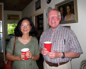 Lisa Green reports from Hillsdale. Sunshine streamed into the hilltop home of Richard Collens, and the music was equally sparkling at the benefit concert for Berkshire Bach on Sunday, September 7. Pianist Jeewon Park, cellist Edward Arron and the stentorian Bejamin Luxon as narrator performed a program of Bach, Poulenc and Piaazzolla — not all necessarily the programming one might find at a Berkshire Bach concert, but perfectly matched for an afternoon of chamber music “the way it is mean tot be heard," as the host likes to call his frequent home concerts. At left, Richard Collens, a board member of Berkshire Bach, greets guest Chris Nye during the reception after the concert. Berkshire Bach’s season opens on September 27 with the Grammy Award-winning St. Luke’s Chamber Ensemble performing at the Mahaiwe in Great Barrington.