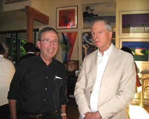 Lisa Green reports from Hillsdale. Sunshine streamed into the hilltop home of Richard Collens, and the music was equally sparkling at the benefit concert for Berkshire Bach on Sunday, September 7. Pianist Jeewon Park, cellist Edward Arron and the stentorian Bejamin Luxon as narrator performed a program of Bach, Poulenc and Piaazzolla — not all necessarily the programming one might find at a Berkshire Bach concert, but perfectly matched for an afternoon of chamber music “the way it is mean tot be heard," as the host likes to call his frequent home concerts. At left, Richard Collens, a board member of Berkshire Bach, greets guest Chris Nye during the reception after the concert. Berkshire Bach’s season opens on September 27 with the Grammy Award-winning St. Luke’s Chamber Ensemble performing at the Mahaiwe in Great Barrington.