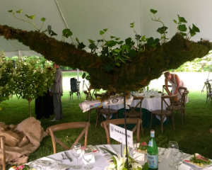 Robin Parow, director of marketing communications, holds up The Garden Bug, a specially produced edition for and about the Fête des Fleurs; Topiaries in the shape of eagles deliver The Garden Bug to each table.