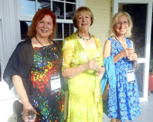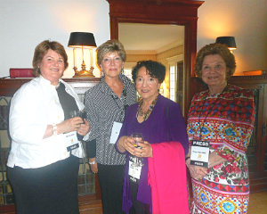 Claudia Perles, quilt artist Pam Johnson and Maria Carls; Susan Wissler, executive director of The Mount, with Christopher Magee, MIT professor emeritus.