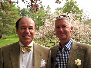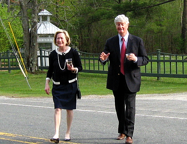 Skippy and Vaughn Nixon adroitly execute the Berkshire Botanical Trot—crossing West Stockbridge Road without spilling.