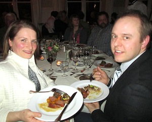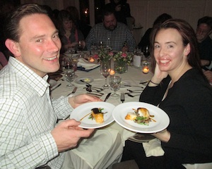 Sylwia Orczykowska and Cafe Adam's Adam Zieminski dig into Jeffrey Thompson's variations on Muscovy duck; Berkshire Mountain Distiller's Jon Height and Courtney Ivey enjoy Hung Huynh's miso-maple bourbon Alaskan cod.
