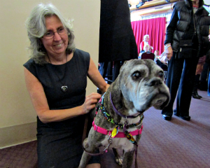 Lisa Ressler, Camille Nugai and BHS board member Sheila Labarbera all represented major sponsor Greylock Federal Credit Union; Cindy and Jeff Caminiti and Catwalk volunteer Melissa Bye take a moment to pet Gabby.