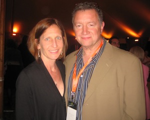 Rachel Louchen reports from Great Barrington. On Thursday, May 29, a huge crowd turned out to screen the appropriately-titled film May In The Summer by Cherien Dabis (about a New York-based woman who returns to her homeland of Jordan for her wedding) and to celebrate the opening of the the ninth annual Berkshire International Film Festival. The mood was excited and upbeat as the park across from The Mahaiwe was transformed into a party plaza by a large white tent, huge food spread and the band, City Rhythm, who got all guests dancing. The four-day festival showcases 75 diverse works of independent feature, documentary, family films and shorts over multiple venues in Great Barrington and Pittsfield, with filmmakers and cast members on hand for discussion panels for many of the screenings. In less than a decade, the festival has become widely recognized, no doubt from its mission to showcase filmmakers from all over the world, and this year brings films from 18 different countries. Cherien Dabis joined the guests underneath the tent following her screening, where numerous filmmakers were also in attendance, mingling with all the Berkshire film buffs. (Above, BIFF Founder and Director Kelley Vickery with Hunter Runette of Jacob's Pillow).