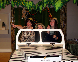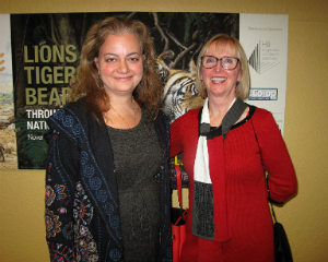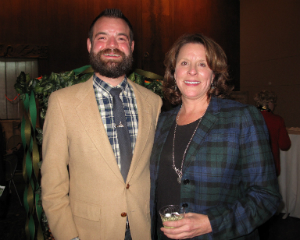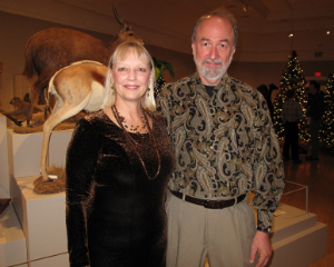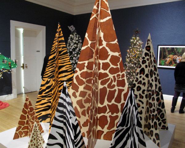 Amy Krzanik reports from Pittsfield. This year’s Festival of Trees at the Berkshire Museum opened with, well, not a bang, exactly… more of an extremely loud kookaburra soliciting attention from the guests. That’s because this year’s preview party doubled as an opening reception for the Museum’s Lions & Tigers & Bears exhibit, and many live animals were on hand to help celebrate. The Creature Teachers from Littleton, Mass. brought some furry, scaly and feathered friends, including the attention-loving kookaburra, a banana-scarfing kinkajou, a preening umbrella cockatoo and other well-behaved beasts. Museum supporters wore their animal-print best to coincide with the “On Safari" theme of the 2014 Festival as they wandered through the twinkling upstairs galleries enjoying wine and hors d’oeuvres. The Festival of Trees and Lions & Tigers & Bears: Through the Lens with National Geographic exhibits will be on display through January 4, 2015. Above, Pam Knisley, Berkshire Museum Curatorial Assistant Kendra Knisley and Kyle Wilson pose in front of a Kodiak bear.