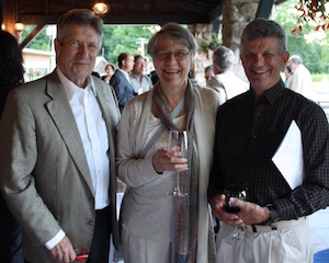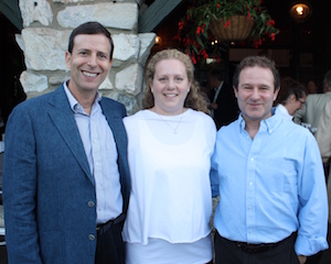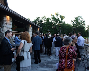 Ken Werner, Jennie Jadow and David Jadow; Guests mingle on the terrace.