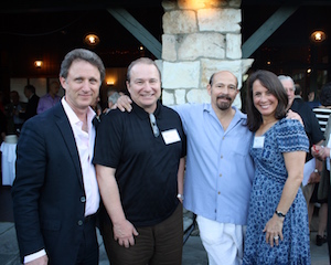 Jamie Larson reports from Great Barrington. For almost a decade now, the Berkshire Playwrights Lab has been both a sanctuary for artists and an intimate outlet for patrons to support exciting new stage works. At their gala last Friday at the picturesque Wyantenuck Country Club, party-goers were treated to a lively scene, a fabulous silent auction and the excellent company of writers, directors and actors associated with the Lab. The BPL has given writers invaluable resources and guidance to help make sure that the spark of inspiration turns into the next great theatrical work. Dozens of pieces have now come to life thanks to the Berkshire Playwrights Lab. [Pictured above, the three BPL co-artistic directors and the organization's board chair: Matthew Penn, president Jim Frangione, VP Joe Cacaci and chair Stacey Gillis Weber.]