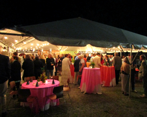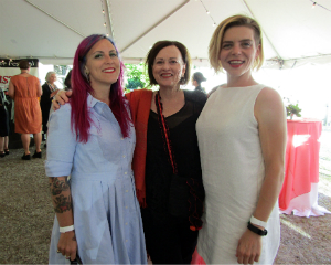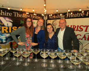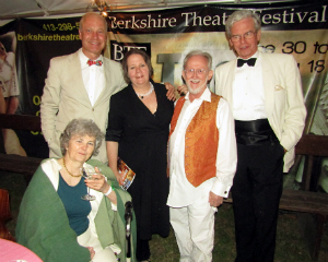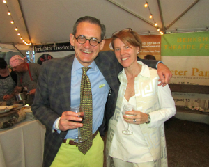 Amy Krzanik reports from Stockbridge. If you were anywhere near Main Street in Stockbridge on Saturday evening, July 2, you may have heard the tooting of party horns and a chorus of voices singing “Happy Birthday." The birthday boy was former Berkshire Theatre Group artistic director Billy Miles and it was his 111th, although he wasn’t there — under a tent outside of the Fitzpatrick Main Stage — to celebrate. But don’t worry, there were plenty of theatre fans there and his birthday cake did not go to waste. Before an evening performance of Cat on a Hot Tin Roof, supporters gathered at a reception featuring a Southern-inspired menu that included cornbread topped with pulled pork and slaw, among other snacks created for the occasion by Chef Brian Alberg. The evening’s signature drink was the mint julep. Miles’ daughters, Mary Ann Miles and Elizabeth Miles Montgomery, were not only present at the event, but shared some fascinating background information about their father’s career and even blew out the candles on his birthday cake at the post-show festivities. Miles, who served as artistic director from 1935-1958, oversaw productions starring Ethel Barrymore, Tallulah Bankhead, Lillian Gish, Thornton Wilder, Gloria Swanson, Buster Keaton and many other huge names. Proceeds will benefit Berkshire Theatre Group's Festival Archives. [Above, one of the play's stars, Rebecca Brooksher, with BTG's artistic director and CEO, Kate Maguire.