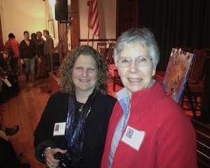 Rachel Louchen reports from Sheffield. Great mothers and great writers packed the house for the opening night of the Berkshire Festival for Women Writers on Friday, March 1. Out of the Mouths of Babes: An Evening of Mothers Reading to Others, also celebrated the book launch of An Anthology of Babes compiled and edited by Suzi Banks Baum, who, along with six other women, spoke about their sometimes difficult journey through motherhood and how parenting impacts their writing in the process. Mixing equal parts humor with sorrow, the audience was enthralled with each story from Michelle Gillet's observations of her daughter becoming a nervous parent to Jenny Laird's heartbreaking experience in the NICU when her newborn son was ill. More than 150 woman will volunteer their time and talents for the third year of the festival, which continues over the course of the month. Director Jennifer Browdy de Hernandez says the goal of the festival is to “create a nurturing, warm, and supportive space for women in the Berkshires to open up with what's in their hearts." Considering the night's theme, that mission statement rang true. At left, Artist Gabrielle Senza and Amy Taylor.