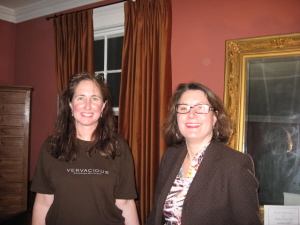 Visiting from Watkins Glen, Betsy Galbraith takes the rare mid-November night air with her sister Gail Cashen, of the Fund for Columbia County.