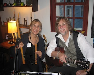 Volunteer Beth Timlege with trustee Christa Lindsey; Mary Knysh and David Reed provided music for the evening.