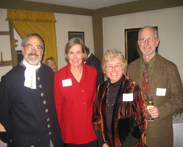 Rachel Louchen reports from Monterey. Every year, for one special night after closing for the season, the Bidwell House Museum opens for Our Colonial Holiday Thanksgiving Fundraising Party. This year's event, on Saturday, November 30, was Bidwell's seventh annual. The heritage landmark in Monterey, built in 1747, was the former home of Reverend Adonjah and presently serves as a museum; it also hosts educational programs aiming to shed light on early America in Western Massachusetts. Held just two days after Thanksgiving, the Bidwell was all dressed up for the occasion, making it easy to imagine holidays of Colonial past, even if the music, hors d'oeuvres, cocktails, and a silent auction were 21st-century conceits. Donations to the auction will aid with events and programs in the upcoming season. At left, Manager Eileen Mahoney, Board Vice President Kathryn Roberts, and Judith Runette.