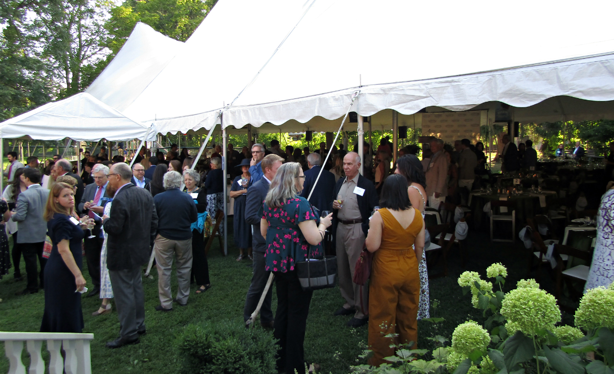 Mahaiwe Performing Arts Center, Great Barrington’s jewel of a building brought back from the brink 15 years ago, honored one of its founding board members, Maggie Buchwald, on Saturday, Aug. 10. A true believer since the beginning, Buchwald also served as the non-profit’s chair of the board from 2013–2018. The gala began with cocktails and dinner under tents on the lawn across from the theater. Around 300 guests enjoyed a meal catered by Peter Platt of The Old Inn on the Green. A sold out performance by comedians John Mulaney and Seaton Smith capped the evening, which raised more than $450,000 for the theater’s programming, including $90,000 earmarked for a new digital cinema system.