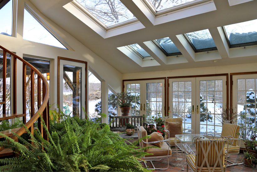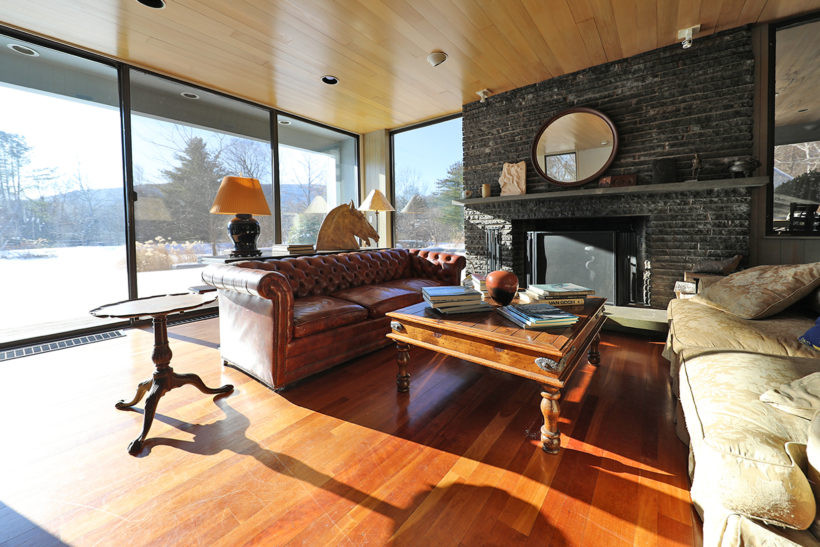 A West Stockbridge property built in 1986 sits on 22 acres among birch groves. There are five bedrooms and five bathrooms in almost 6,000 square feet. The main residence has an open floorplan, with many fireplaces and a view in every direction. The property includes a clay-bottomed swimming pond, and a two-bedroom studio/guest house. Listed at $1,950,000 by Cohen & White Associates.