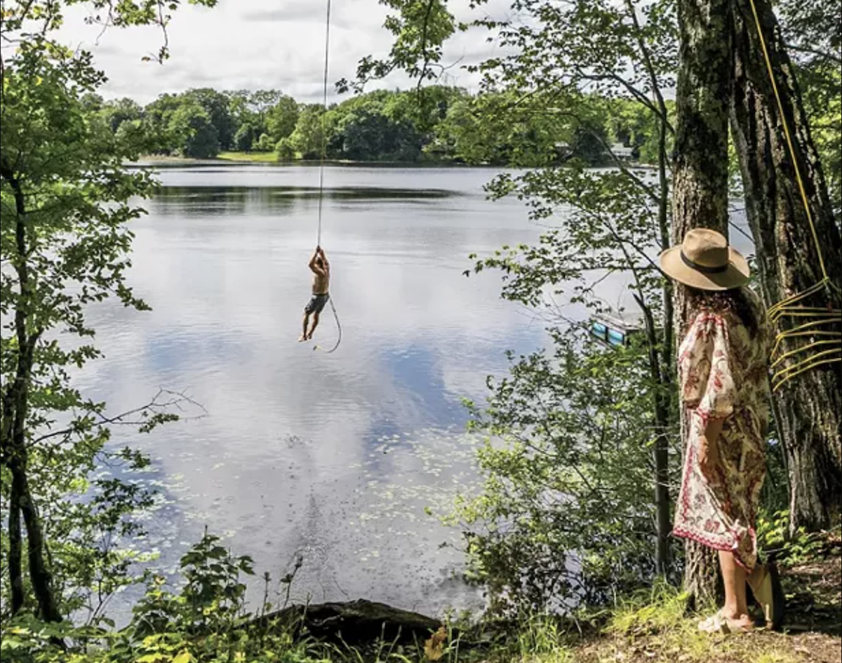 Josh Kowan and Janna Cohen Kowan sneak some time on the family rope swing when their kids aren’t looking. The couple’s Brady Bunch family includes Max, Shepard, Miles, and Claire, who are all young adults. Their oldest, Brandon, started the custom woodworking company Cross & Miller in Stone Ridge and now has a family of his own.