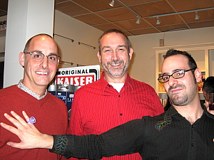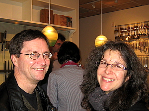 bluecashew Kitchen Pharmacy, a new store on Rhinebeck's Montgomery Row, held a gala opening on Saturday, November 7. The culinarily ambitious, both pros and amateurs, were eager to check out the latest wrinkles in bakeware, cookbooks, electronics, dinnerwear, linens—no matter what ails your kitchen and/or dining room, "pharmacists" Gregory Triana and Sean Nutley have the cure. Guests nibbled tasty savories, including little squares of pizza from Gigi Trattoria, just across the street, and delicious bite-size cookies and cupcakes from a new caterer, {encode="karen@mercuryproductions.tv" title="Karen Tarlofsky"}'s Mad Cravings.