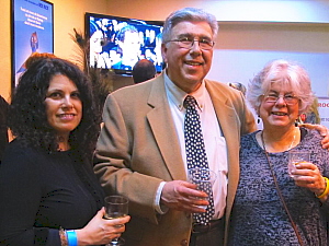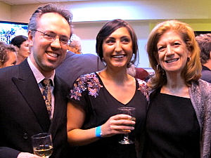 Cultural correspondent Bess J.M. Hochstein reports from Pittsfield: It's much easier for Hollywood types to doll up for the Academy Awards in the warmth of Los Angeles, where down jackets and other wardrobe-busting winter layers are unnecessary, but a glittery crowd managed to shine quite well, thank you, at Berkshire International Film Festival’s live broadcast of the Oscars on Sunday, February 27 at the Beacon Cinema. After shedding their outerwear to stroll the red-carpeted lobby in style, guests ascended to the VIP party rooms and snacked on clever caterer Katie Baldwin’s award-themed delicacies, such as Soy Story sushi rolls, Black Prawn skewered shrimp, and The King’s Quiche, while sipping the evening's signature cocktail, 127 Sours. There seemed to be only one contender for the Oscar host lookalike contest—an unrecognizable Molly Boxer in her best Anne Hathaway disguise—but guests did their best to act like Academy Award-nominees before heading into the screening rooms to watch the real players get their just desserts. And yes, there was popcorn, though for this evening it was truffled, of course.