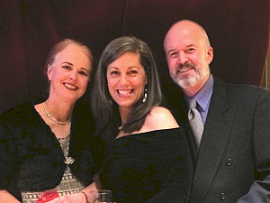 Vicki Bonnington, resplendent in vintage Victor Costa with an Armani ostrich-feather shawl, and Steven Spielberg doppelganger David Schecker; Berkshire Botanical Executive Director Molly Boxer, vying for the Anne Hathaway lookalike prize, and realtor Barbara Schulman.