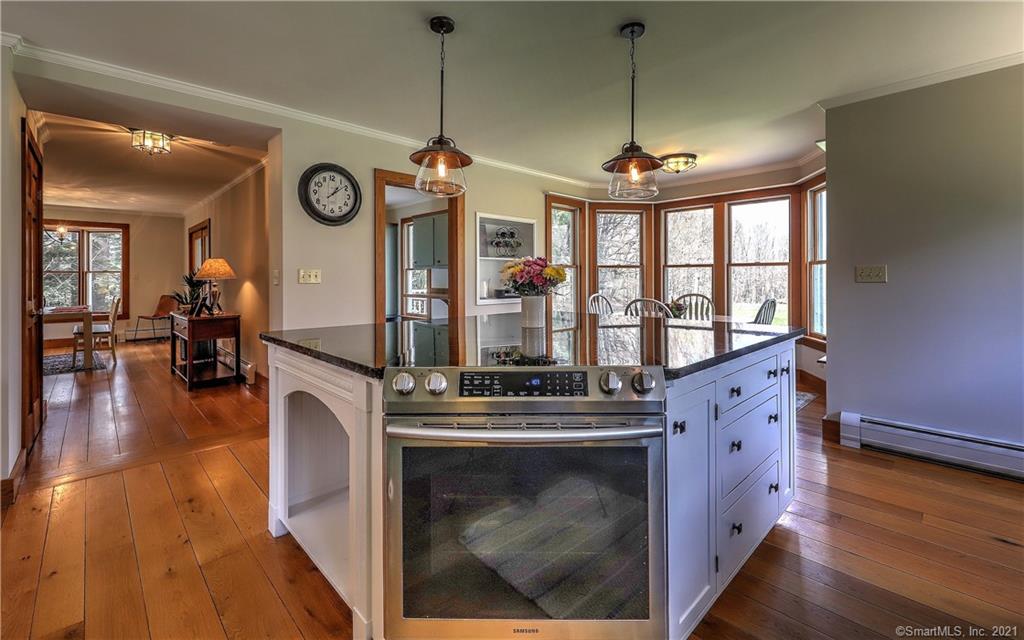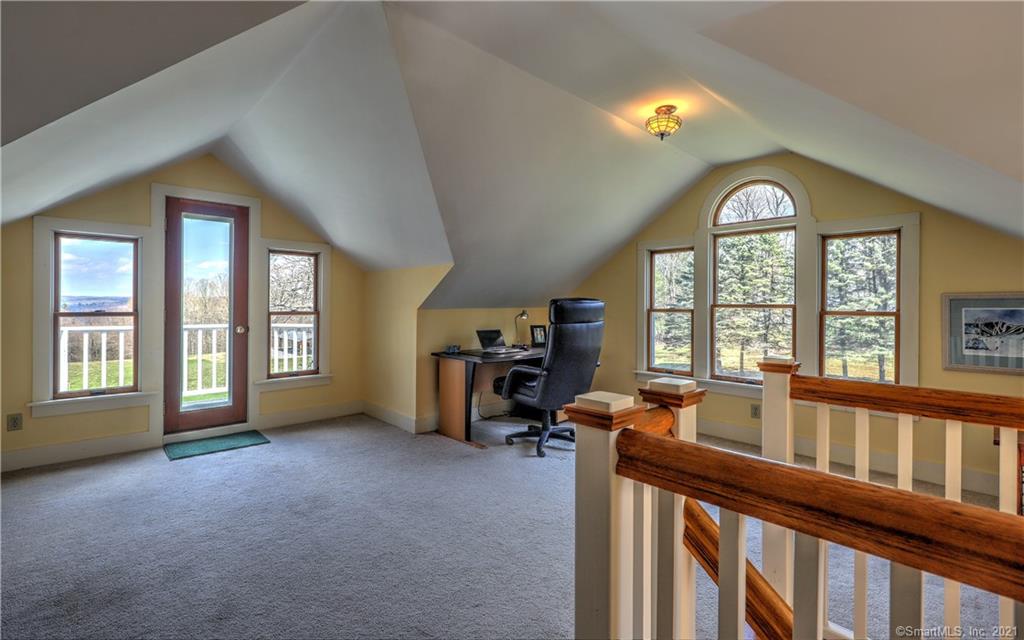 In Torrington, this country home has four bedrooms and three baths with an updated kitchen, a large dining room, and living room with a wood stove. A loft offers an office space with its own private balcony. There's a studio space attached to the two-car garage. Outside, there is plenty of space for a pasture and even room for a riding ring, should you choose to add to the brand new four-stall horse barn. Listed at $529,900 by Coldwell Banker Realty.