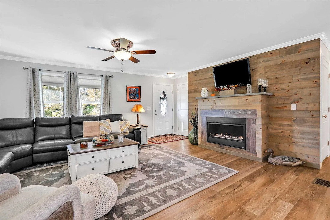 Built in 2020, this single-level home offers the finest finishes and ample space. There are three bedrooms and two bathrooms, and an open concept with high-end everything. The full basement features high ceilings and lots of light. The covered front porch overlooks the four-plus acres. Listed at $549,000 by Exp Realty.