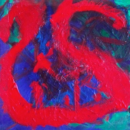One of Brendan O’Connell’s foot-square paintings currently on display in Washington Depot.