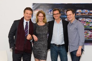 The artist, second from right, with Alec Baldwin, Emily Buchanan and actor Josh Charles at his NYC show.