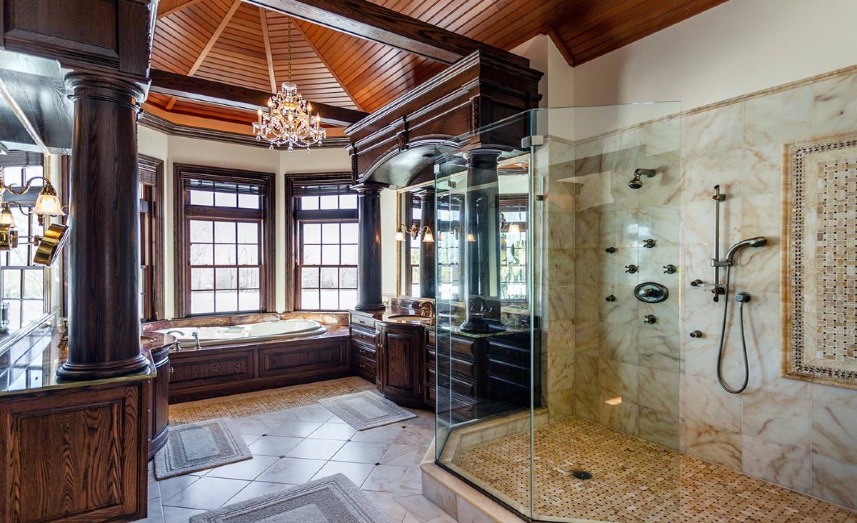 Built in 2006, this brick Colonial has four bedrooms and five bathrooms and is sited on ten-plus acres in Litchfield. Beisdes the gourmet kitchen, there is a family room that walks out to an enclosed sun room that takes in views of the back yard with a stone waterfall and pond. Upstairs is the office/library. The lower level has a game room with bath and full kitchen, a wine cellar and wine/beer making studio. The barn offers a studio or workshop and a three-car garage. Listed at $2,500,000 by William Raveis Luxury Properties.