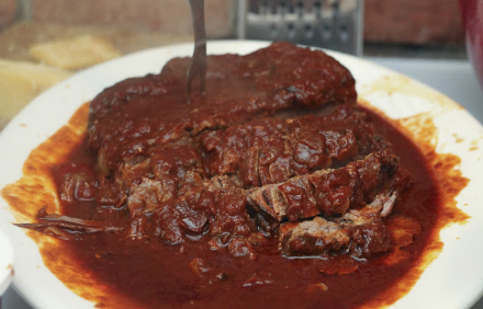 Brisket Chili 4 tablespoons of lard or bacon drippings 1 whole beef brisket, with lots of fat (roughly 6 lbs.) Sea salt 2 medium onions, chopped 4 cloves garlic, crushed 3 teaspoons sweet smoked paprika 3 teaspoons cumin 4 chipotle chiles in adobo sauce, plus 2 tablespoons of adobo sauce 4 dried ancho chiles 6 oz. of Tazo bittersweet chocolate 2 tablespoons tomato paste 2 cans of whole plum tomatoes 1 quart of beef stock 1 24-oz. bottle of Big Elm IPA To prepare: Bring the brisket out of the fridge at least one hour prior to cooking so it comes to room temperature. At the same time, soak the dried chiles in hot water for about ½ hour. 1. Pat the brisket dry and coat with salt. (We used smoked salt - if you can find it, we recommend it!). Preheat the oven to 250. 2. Heat the lard in a large dutch oven over high heat. 3. When the lard starts to smoke, brown the brisket for 3 minutes on each side. Set brisket aside. 4. Add the onion and garlic to the pan, cooking until softened. 5. Add the paprika, cumin, tomato paste, adobo sauce and chiles, cooking for an additional minute. 5. Return the brisket to the pan along with tomatoes, stock, and beer. Bring to a boil and cover. 6. Place in the oven for 6 hours, removing the lid for the final 1½ hours of cooking. 7. After you have removed the brisket from the oven, take the brisket out of its sauce, place in a deep dish and let rest. 8. With an immersion blender, or in a food processor or blender, puree the sauce remaining in the dutch over and reduce for about ½ hour. 9. Serve brisket with the chili sauce poured on top, beans and cornbread on the side.