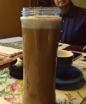 Round Two: We used Assembly Coffee Roasters Bellwether Blend brewed in a basic automatic drip coffeemaker. Taking the same amount of coffee (about two and a half cups), we added the coconut oil and butter. Just plain ol’ unsalted supermarket butter to see if the hype about the butter was actually true. Immediately noticeable was that the froth on this round was not as thick and the color of the coffee was just a tad darker. Which leads us to the taste. “Definitely more hard-edged," said Paul. “But it’s still very flavorful." “It tastes like diner coffee in Ireland," I said. “Or, or…" “Like Dutch coffee," said Regina. “You know, coffee milk. I think they actually call it coffee milk. I’d drink this as an afternoon treat." The second round, while delicious, was more bitter and not as creamy and pillowy. My educated guess: auto drip coffee and that stick butter. However, it was unanimous that this bulletproof business tasted more like a treat than a hardcore executive brainchild. And while I can’t imagine that you’d need butter and MCT oil every morning unless you ARE training MMA or some other extreme sport, definitely try it out for yourself. And try it cold. Lisa saved a little cup for herself and put it in the fridge to cool, then took it out that afternoon and ran it through the blender. The subject line of her email to me: “Cold bulletproof coffee tastes like coffee ice cream…" We’re sold.