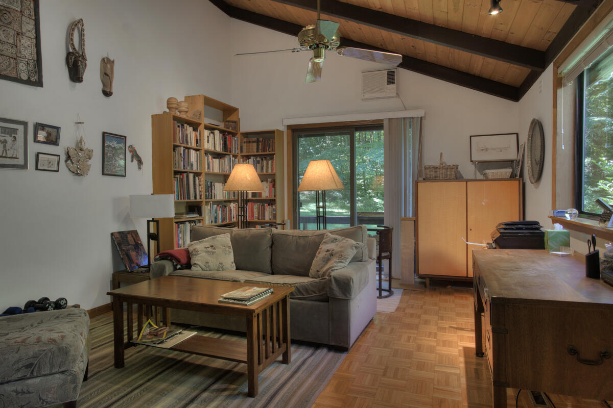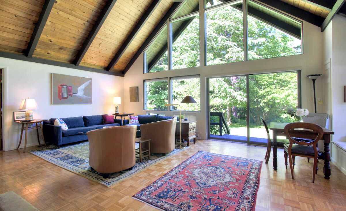Cabin outside, contemporary inside, this 2,500-square-foot home in Hillsdale offers privacy and quiet. There are three bedrooms and three bathrooms, valuted ceilings, and lots of glass walls. The wraparound deck is perfect for entertaining and outdoor dinners. Sited in mature woods surroundings, the property is minutes to the vibrant community of Hillsdale. Listed at $679,000 by Copake Lake Realty.