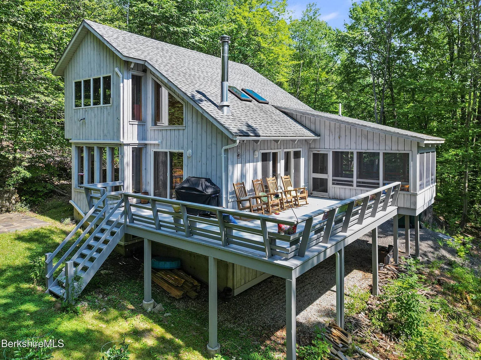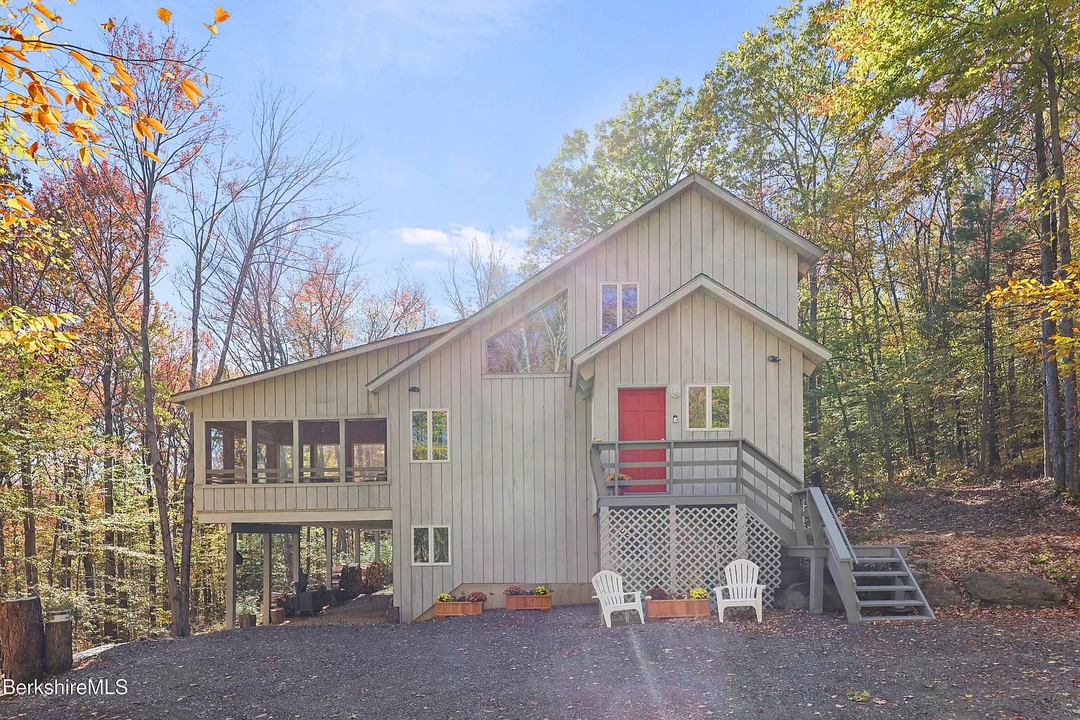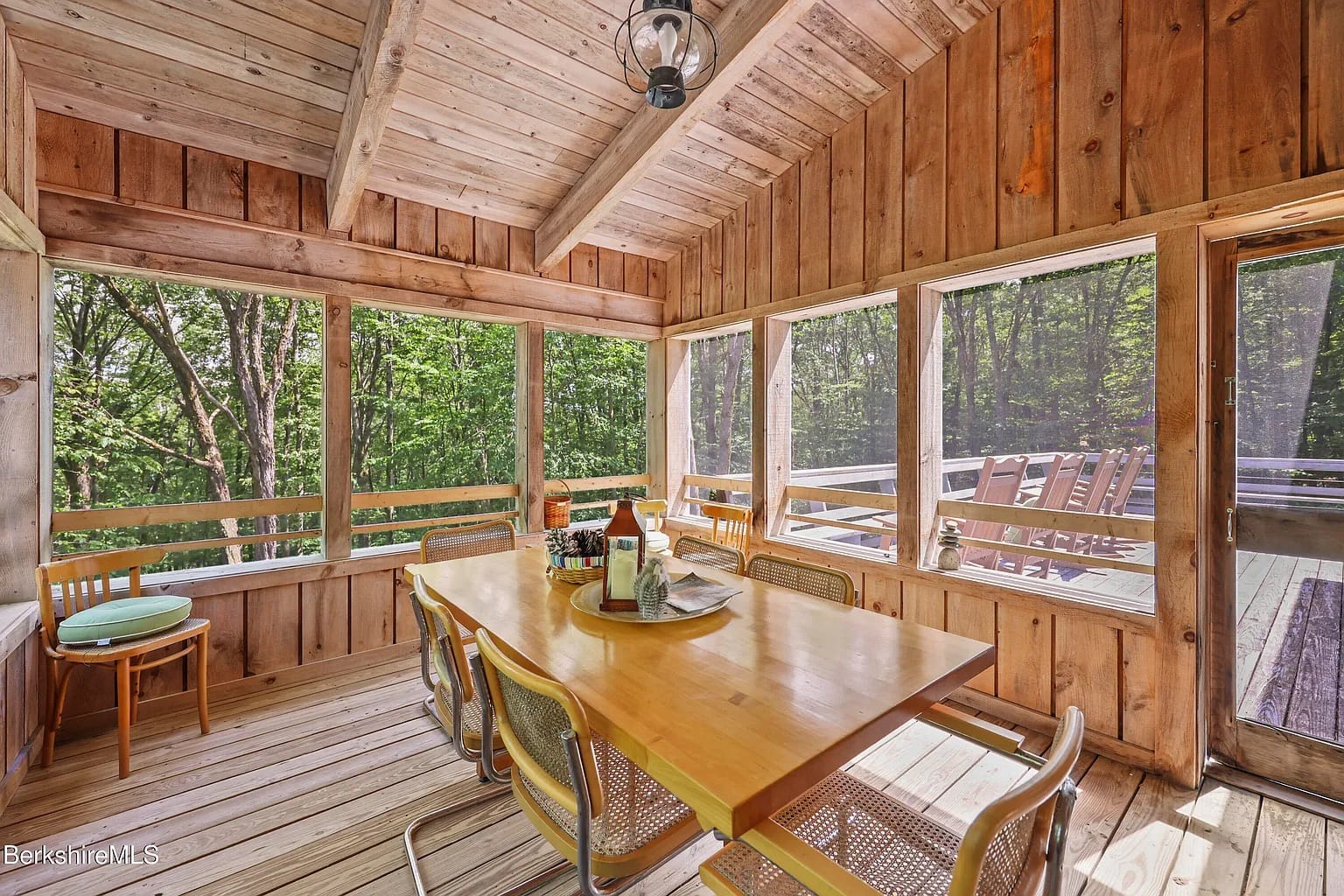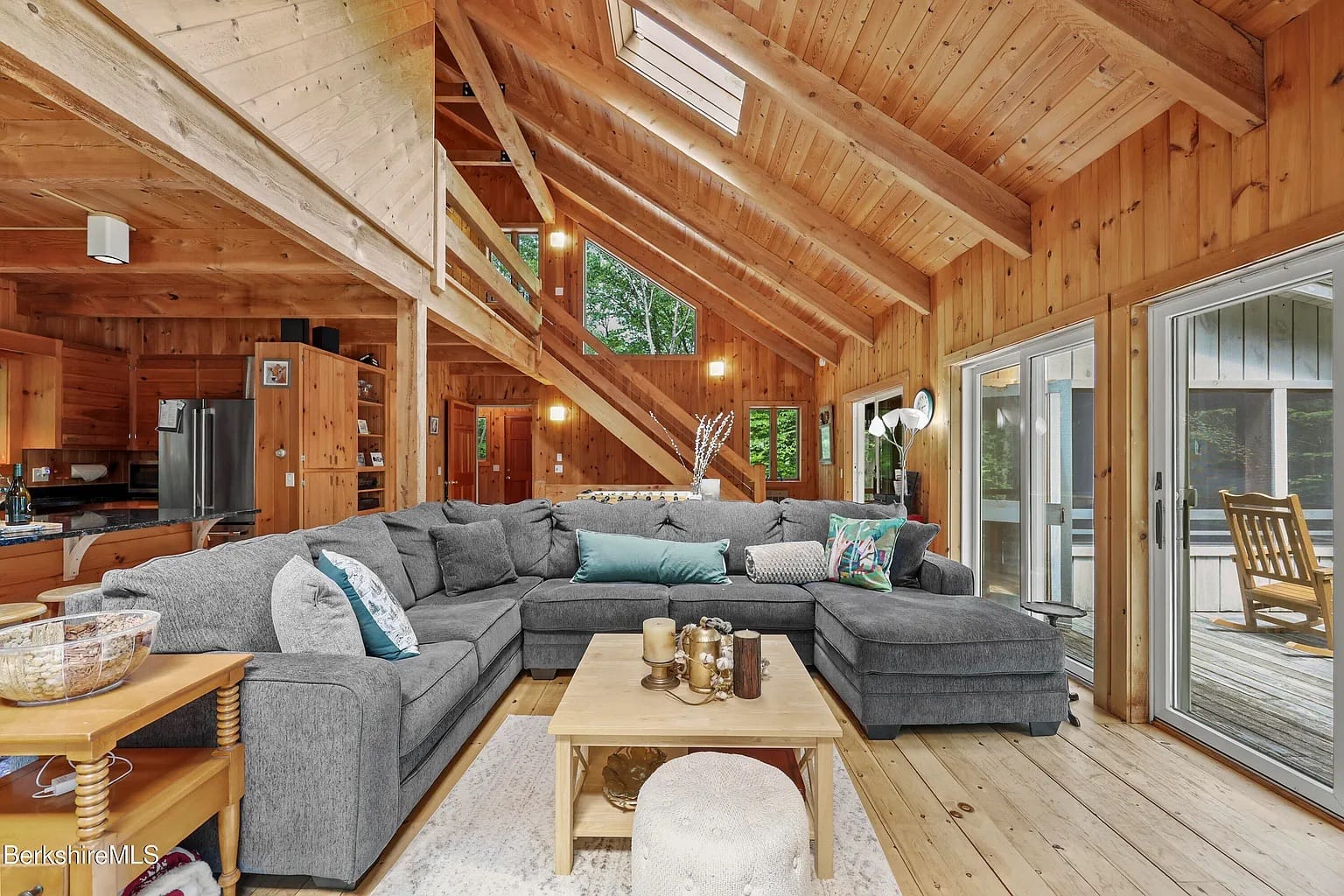 This one is on more than 25 acres and is right at the eastern slope of Jiminy Peak. 112 Silver Street is in the more rural, northern part of Lanesborough, close to skiing as well as a couple of small golf courses. It’s another chalet-style home, built in 1990, designed for big gatherings with a Hallmark-movie feel.