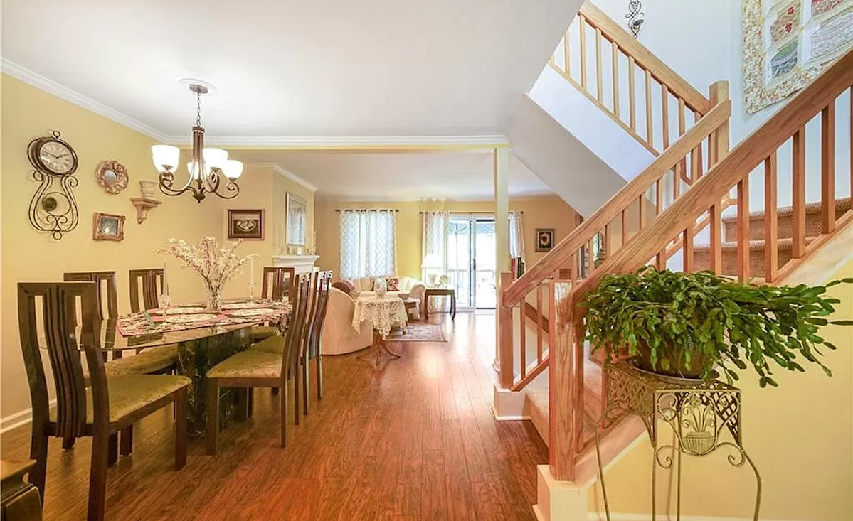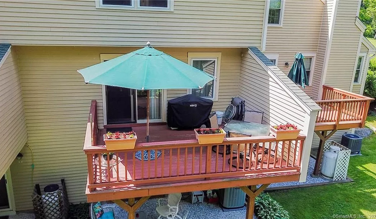 This New Milford two-bedroom, two-and-a-half-bath condo includes more than 1,258 square feet, a one-car attached garage, and use of a shared inground pool. Owners also have access to a private beach on Candlewood Lake. The open concept first floor includes a half bath, eat-in kitchen, formal dining room, and large living room with fireplace and sliders to the deck. Upstairs is a master bedroom suite with walk-in closet and master bath, a second bedroom, and office area with skylight. The finished lower level inclues a family room, workshop, gym room, and walkout sliders to a patio under the upstiars deck. Listed at $365,000 by RE/MAX Town & Country.
