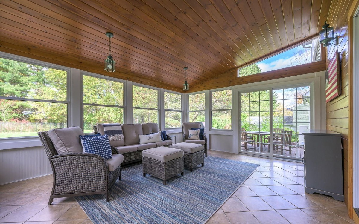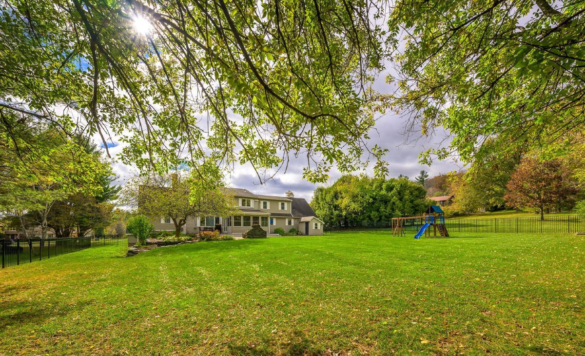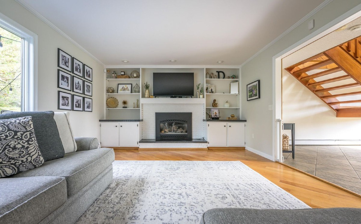 A five-bedroom, three bathroom Cape Cod in Pittsfield offers an abundance of natural light and spacious open floor plan. It includes a three-season porch, a partially finished walkout basement and a fenced yard. It is adjacent to the serene Melville proeprty with walking trails and forest. Listed at $740,000 by Compass.